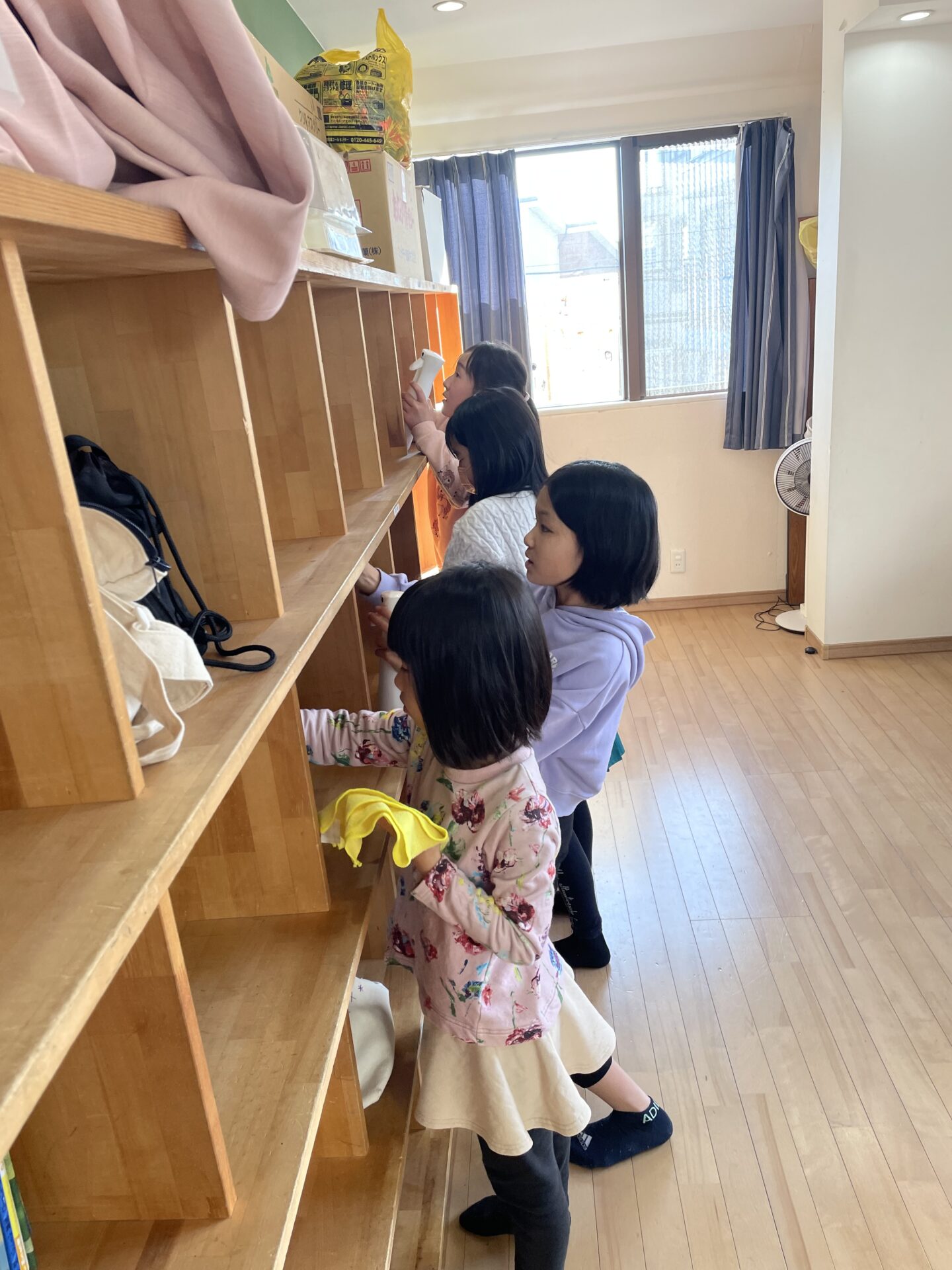 一年間お世話になっている、保育室をみんなで大掃除しました!