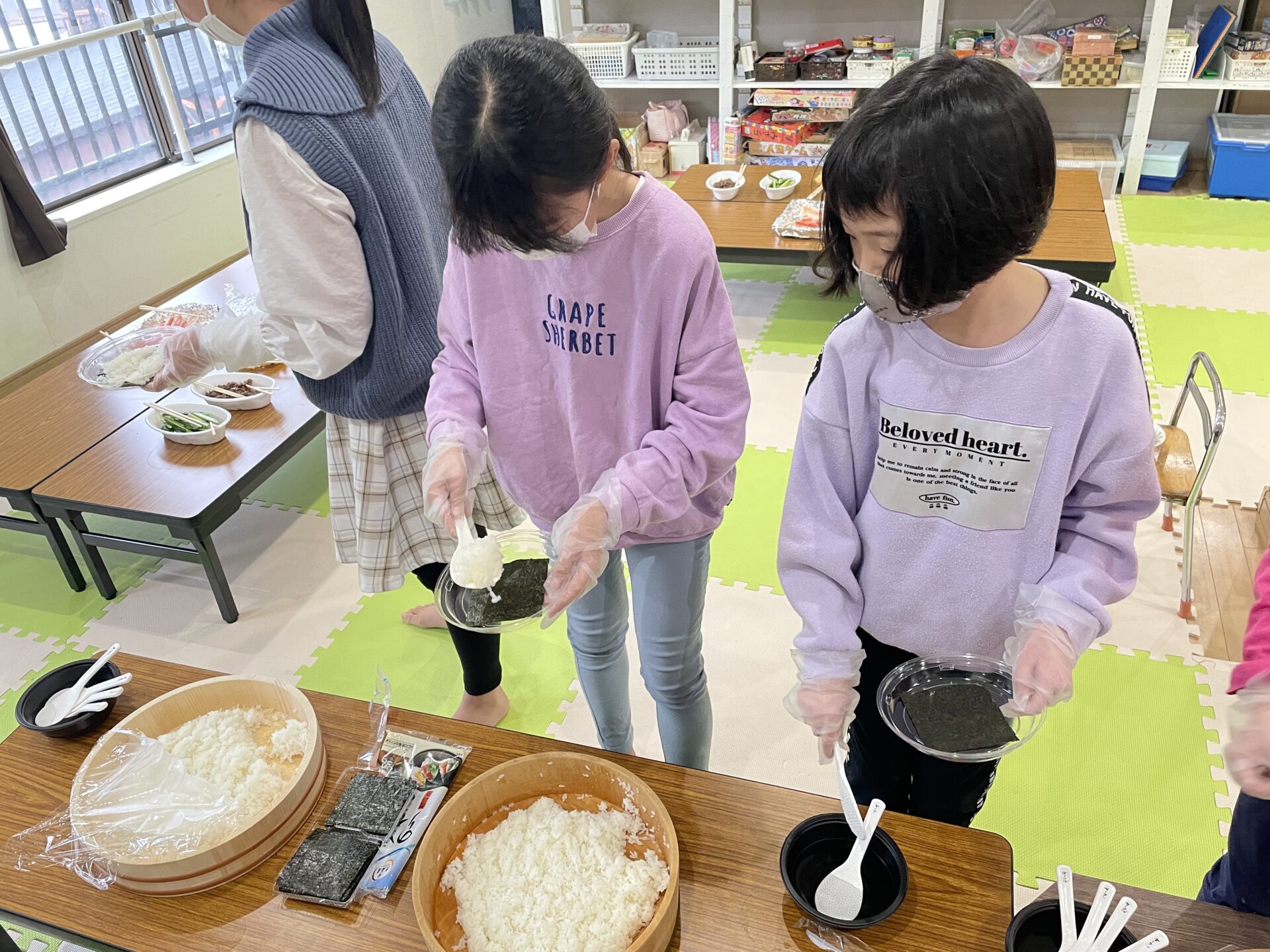 24.02.24 ブログ 手巻きparty開催しました! 2月はお楽しみおやつとして、手巻き寿司を自分で作りました! 好きな具材を入れて、上手に手巻き! っとまでは、いかなくて酢飯と具材をばらばらに食べたりすることもあったけど 慣れてくると美味しそうな手巻き寿司を作れていましたよ! 一覧へ戻る