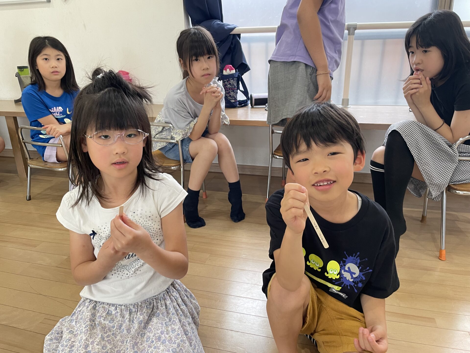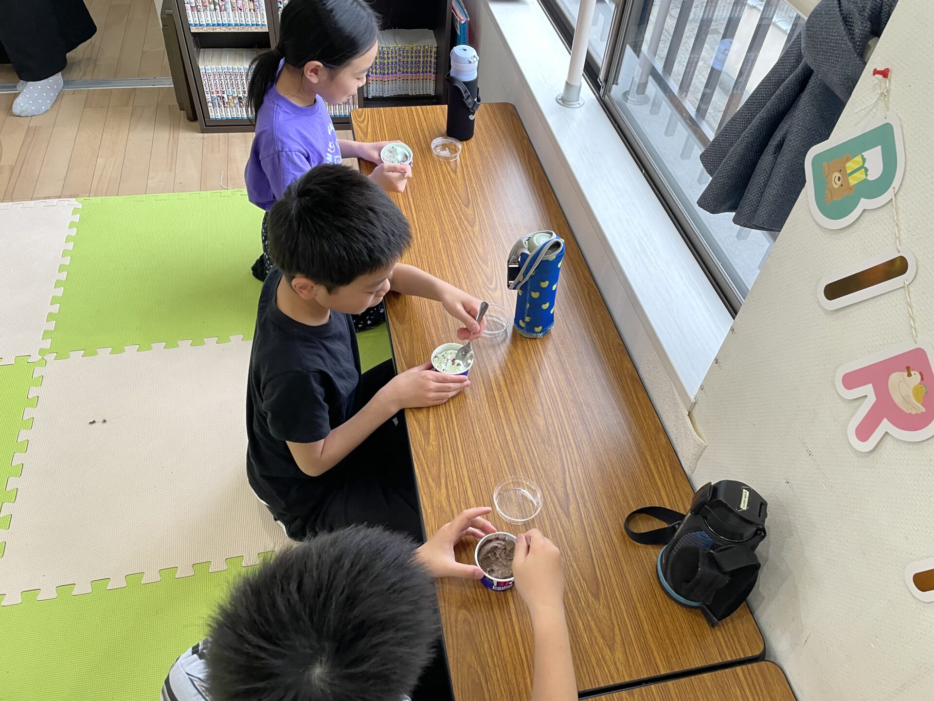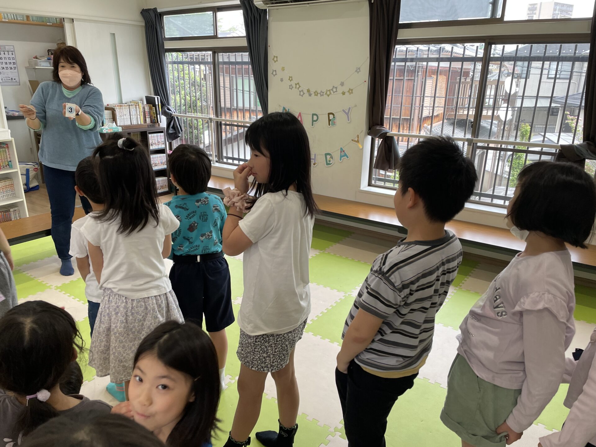 みんなで歌を歌ってあげ、おやつの順番は誕生月の児童がくじを引いて