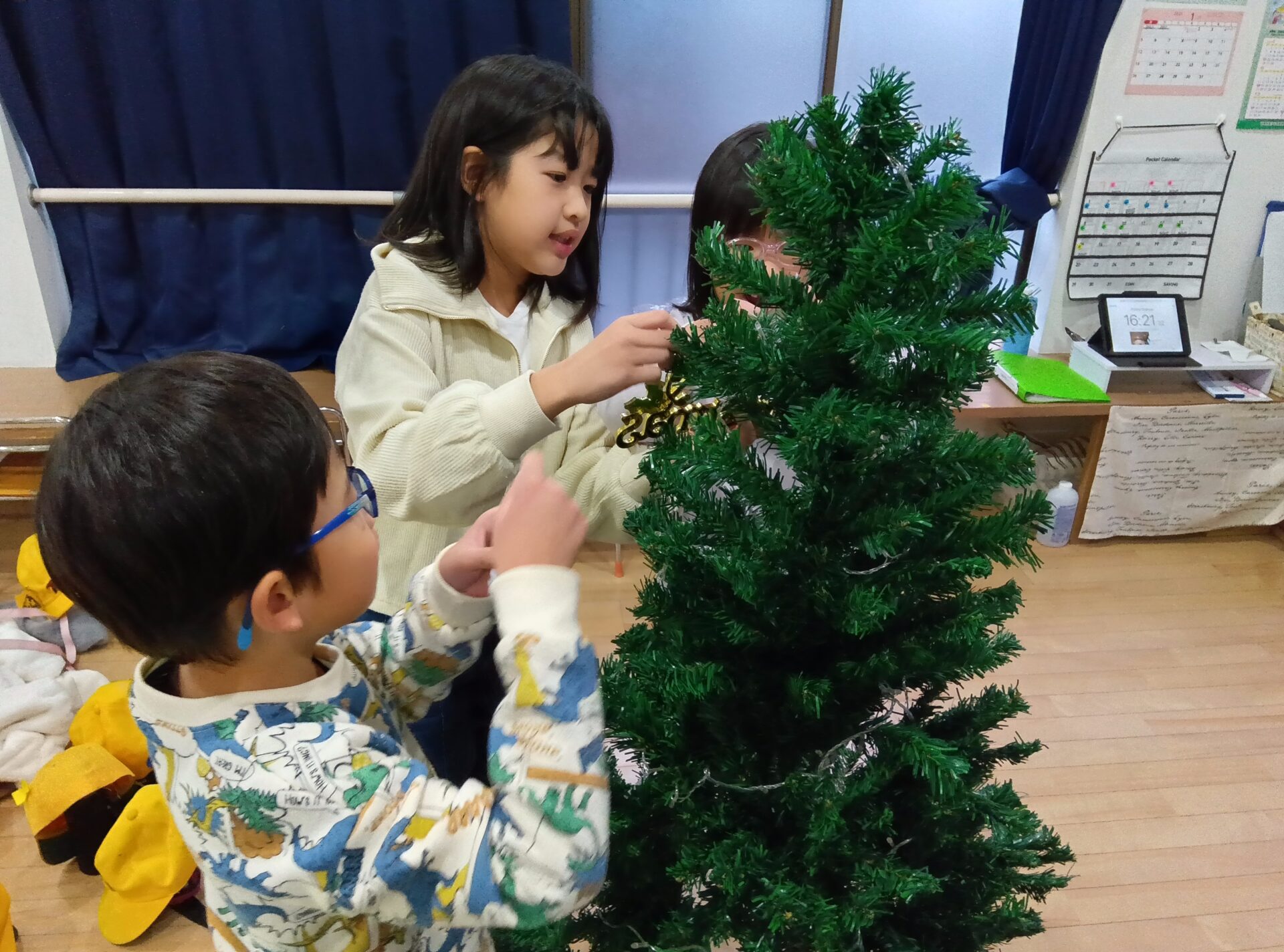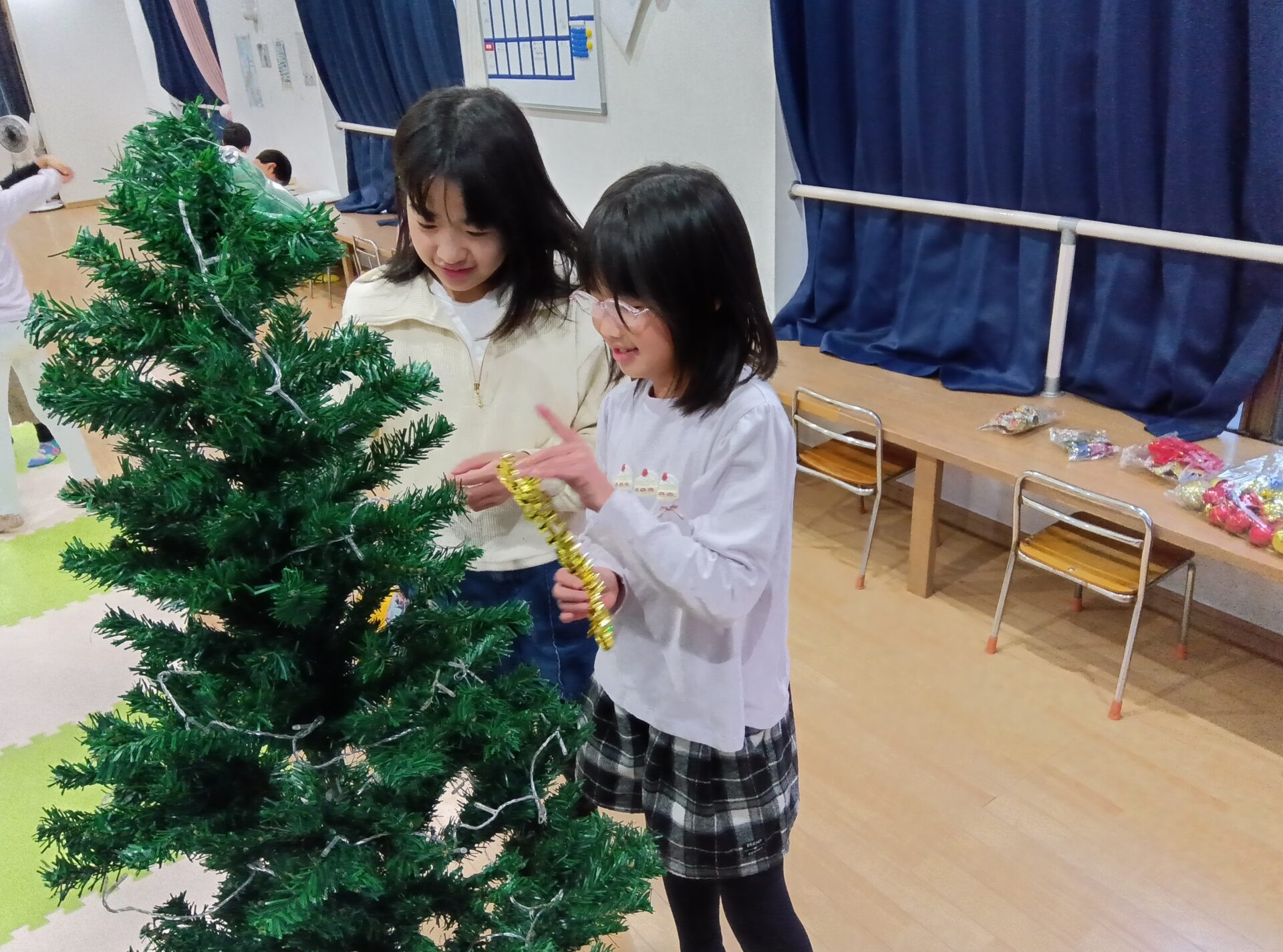 今週はツリーの飾りを付けるところから、始まり