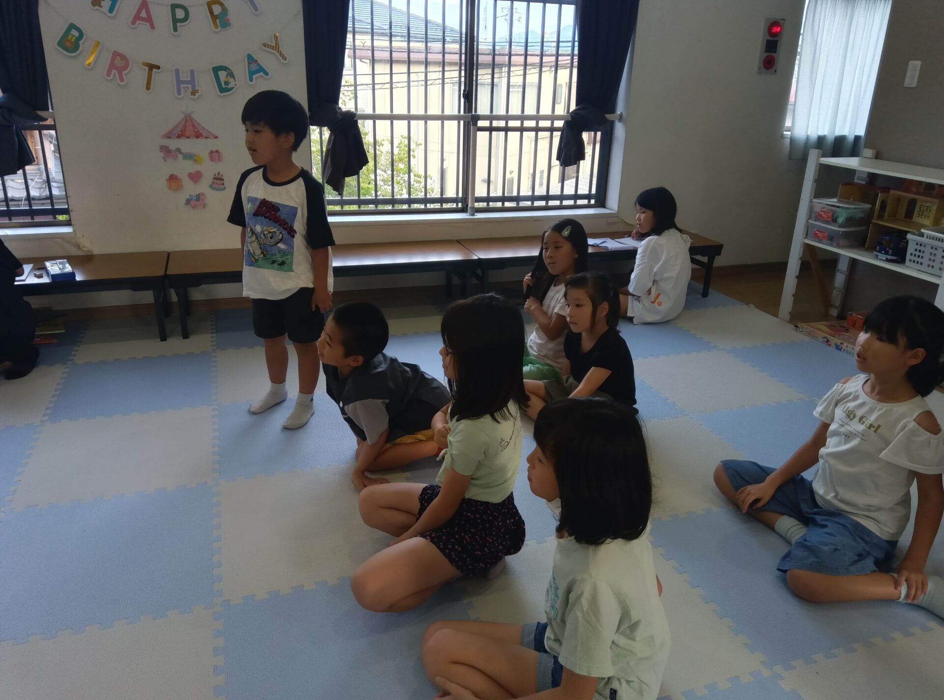 25.09.20 ブログ 9月誕生日 今週は9月の誕生日を行いました!! 今月は1名のお友達が誕生日を迎える月でした。 おやつの後はみんな遊びでカタカナーシをしました、 今回は子ども達も問題を出す側になって カタカナを使わないように気を付けながら 一生懸命説明していましたよ! 一覧へ戻る