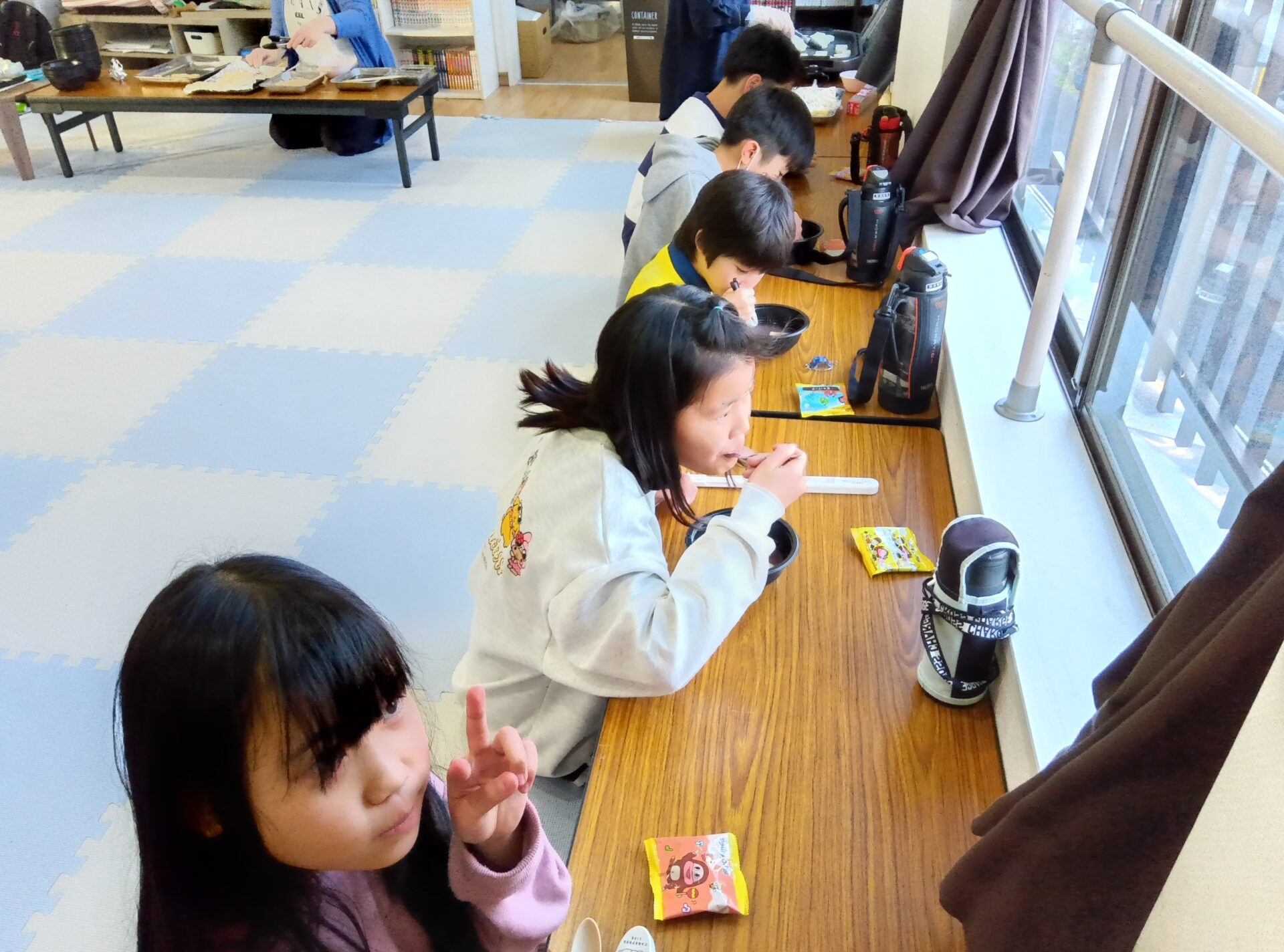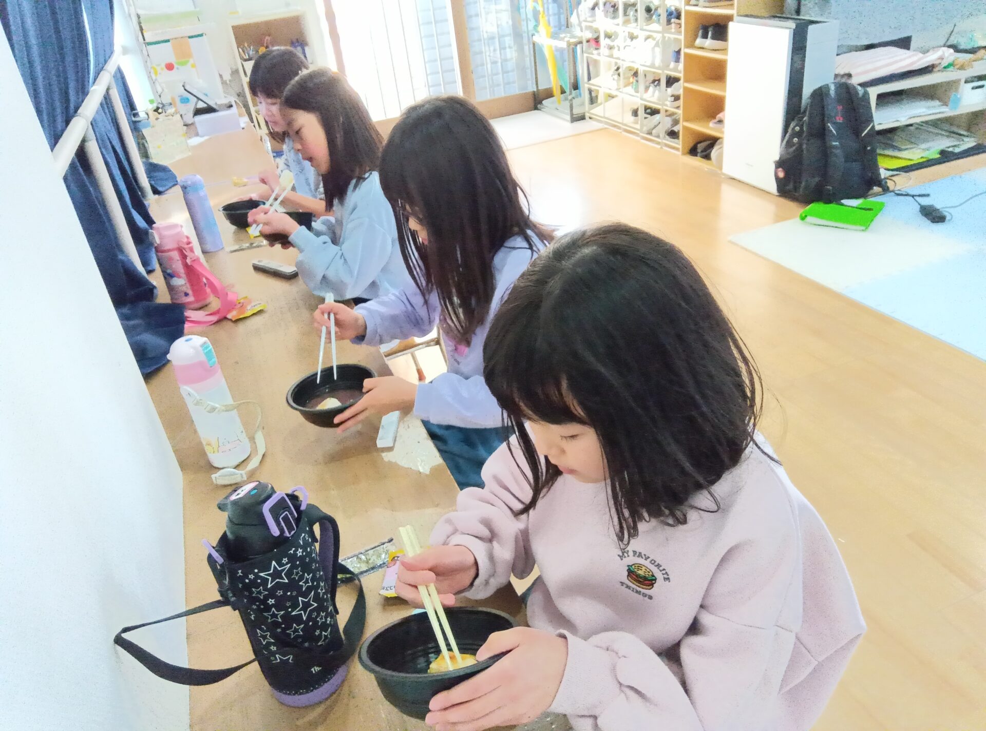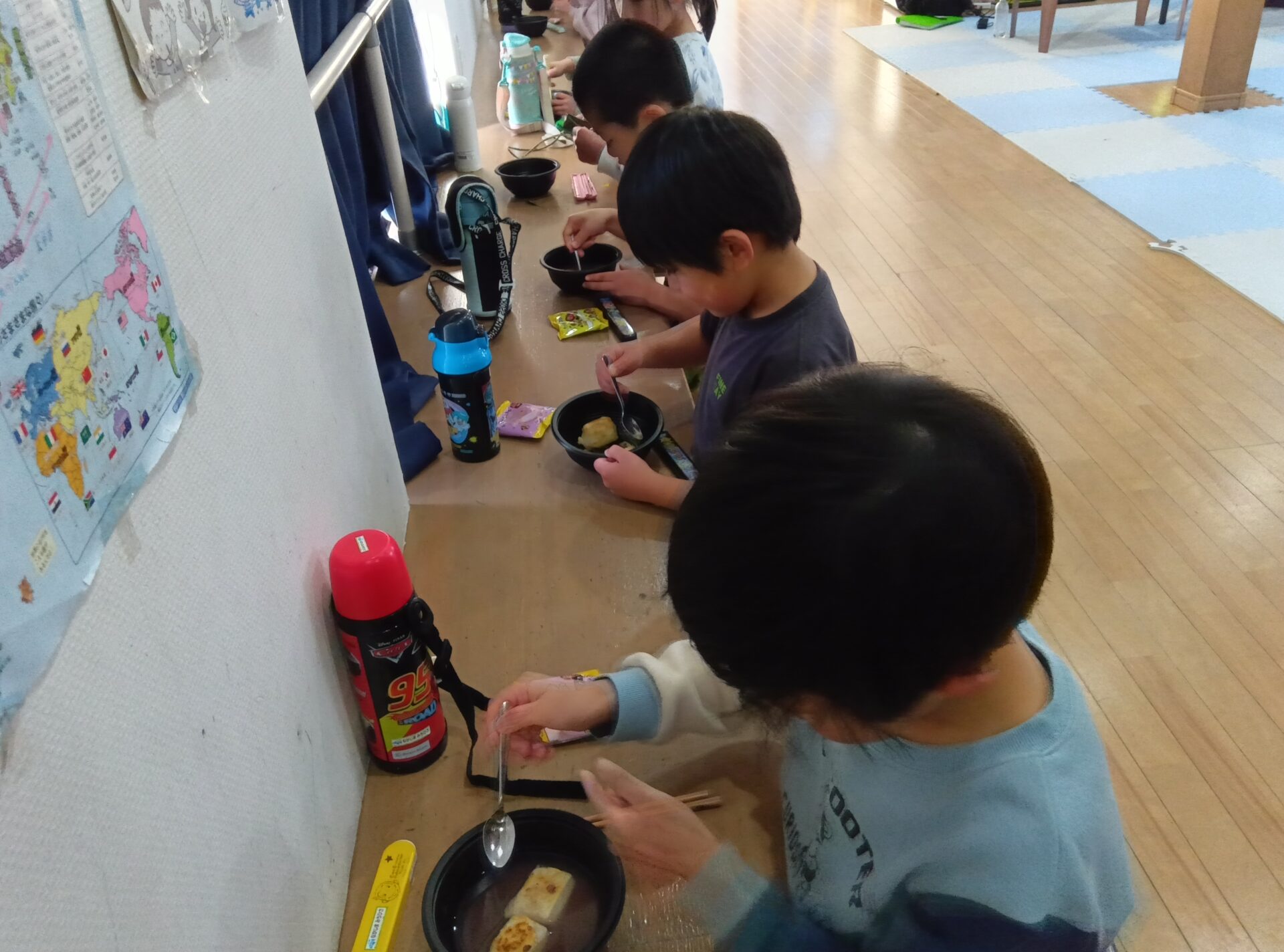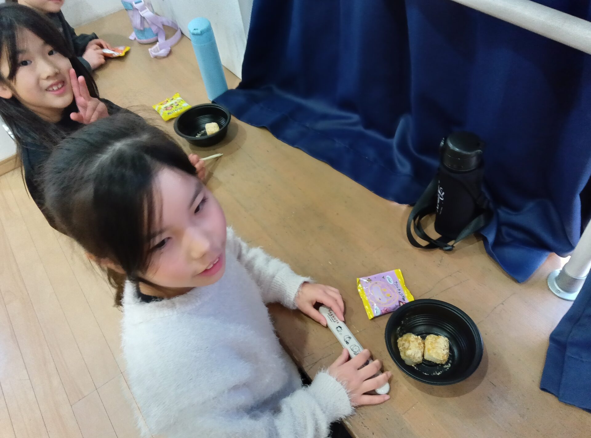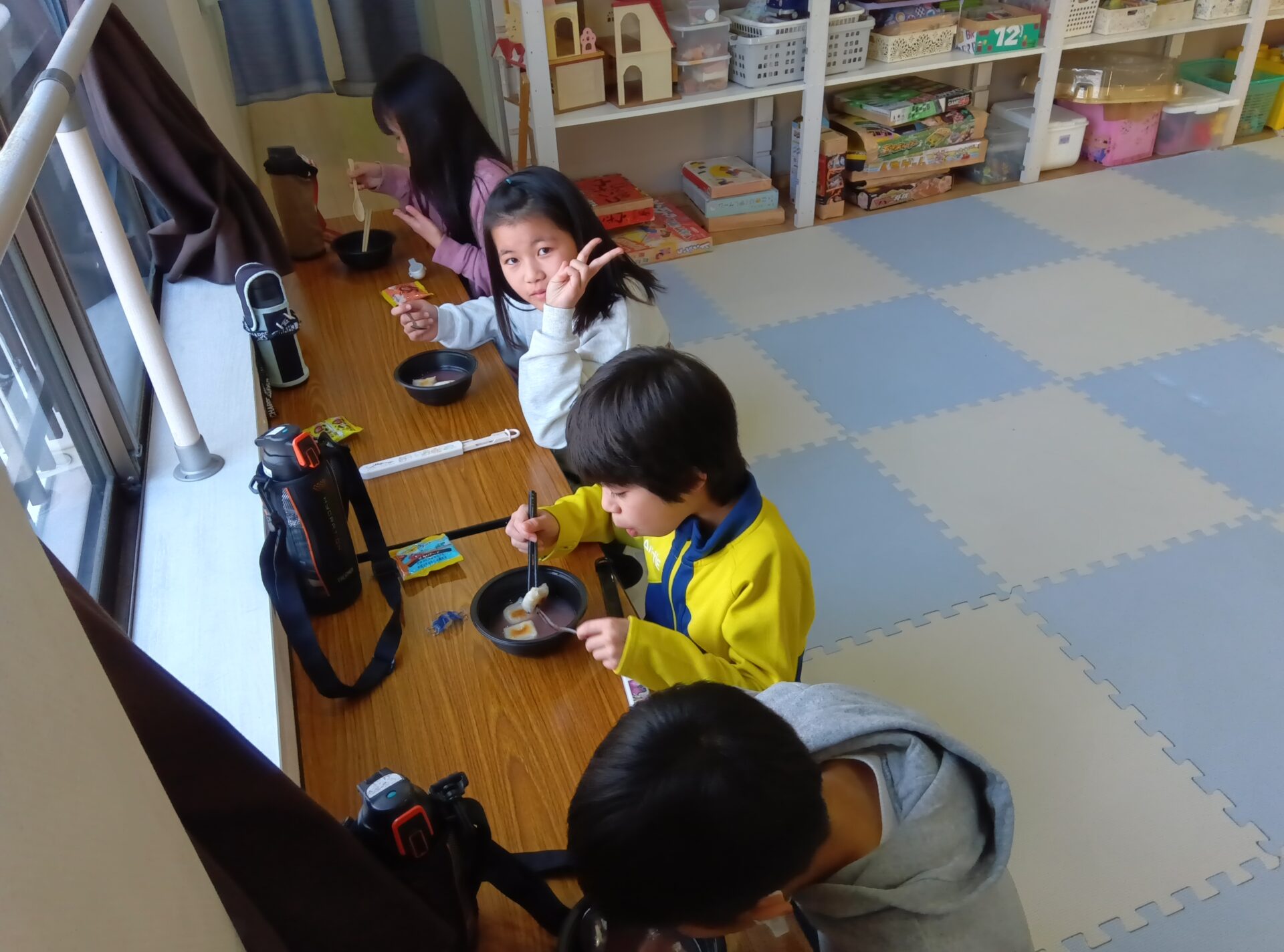 ただ、ぜんざいの中にきなこを入れたり、独自な食べ方をしてる子ども達もいました。