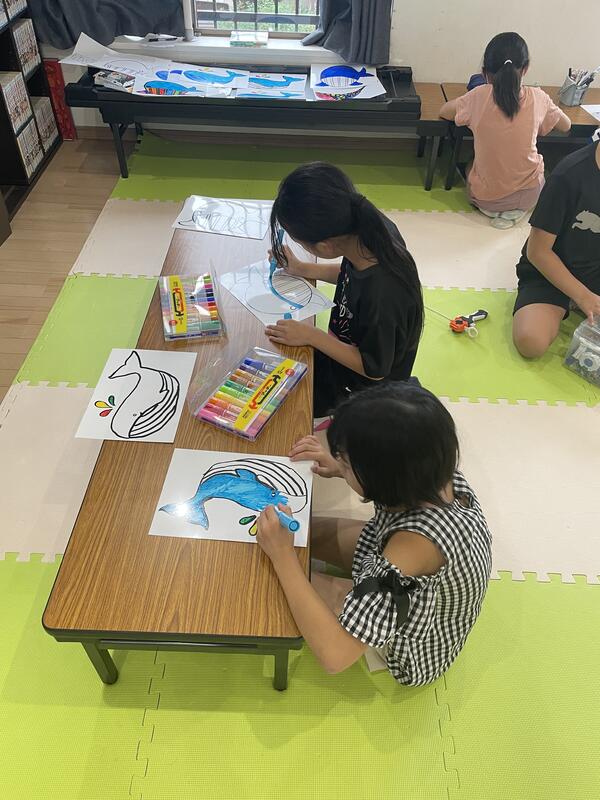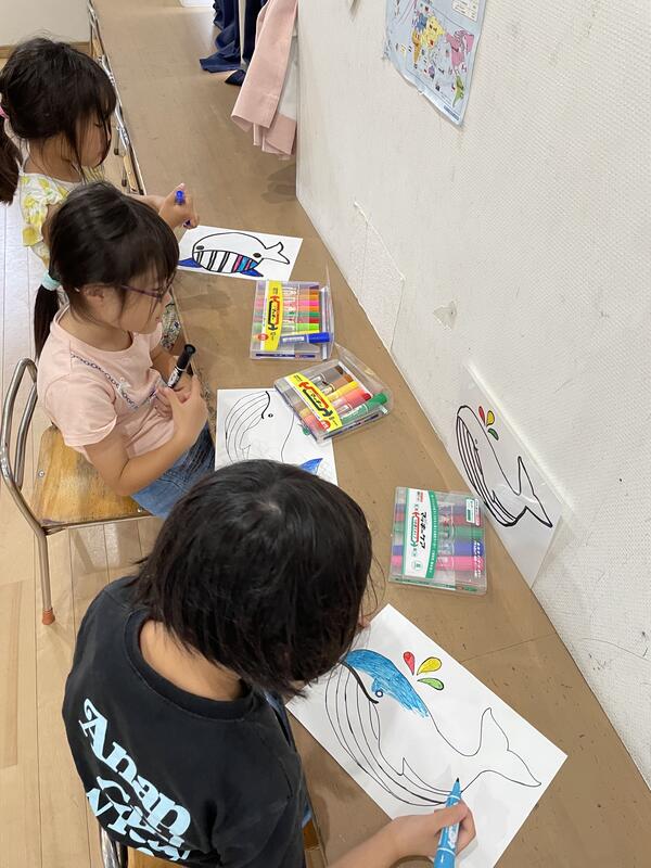 一人一人はみ出ないように気を付けながら、綺麗なくじらの絵が完成しました。